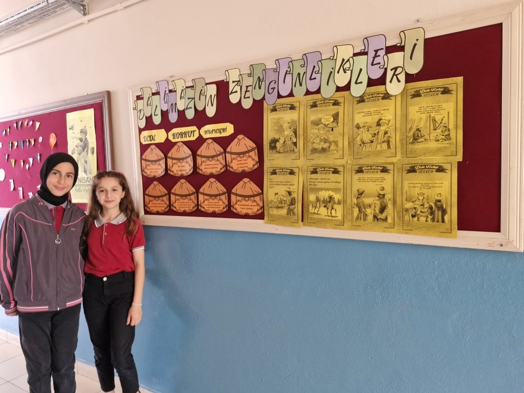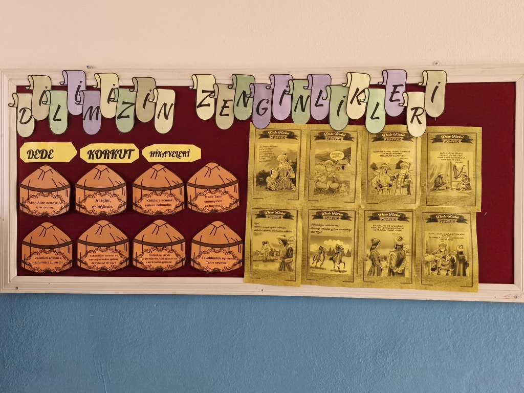Dilimizin Zenginlikleri Projesi kapsamında Dede Korkut ile ilgili pano çalışması hazırlanak Dede Korkut Hikayelerinden parçalar okuma etkinlikleri yapıldı.