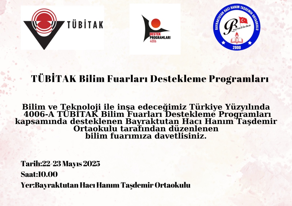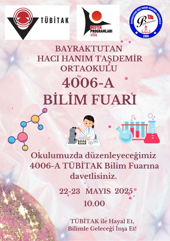 Okulumuzda 4006-A Bilim Fuarı düzenlenecektir.Katılımlarınızı bekliyoruz.